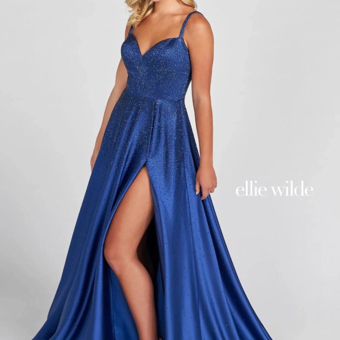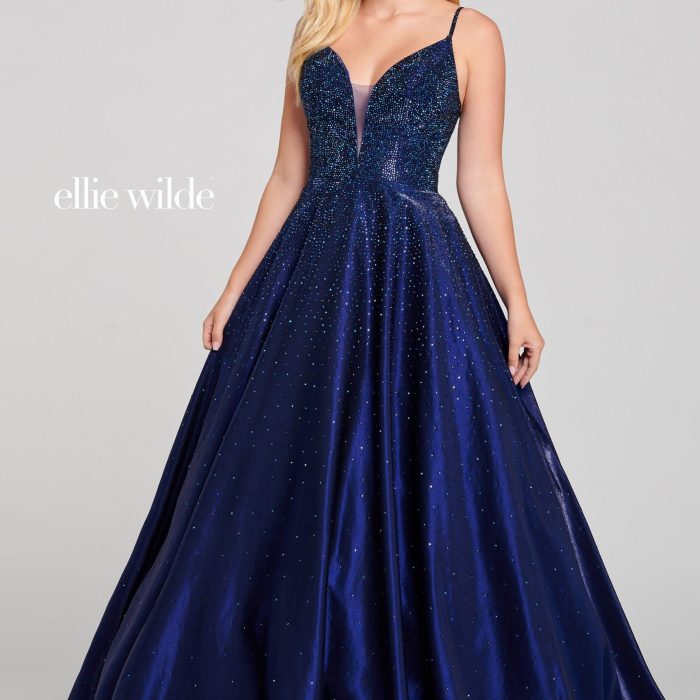 Ellie Wilde EW121005 Long Ball Gown Metallic Prom Dress