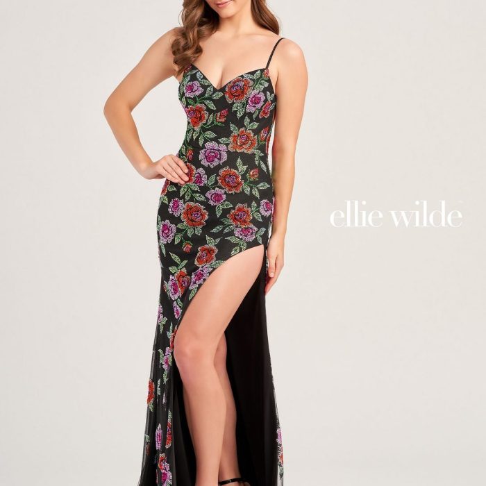 Ellie Wilde EW35069 Fitted Long Formal Floral Beaded Prom Gown