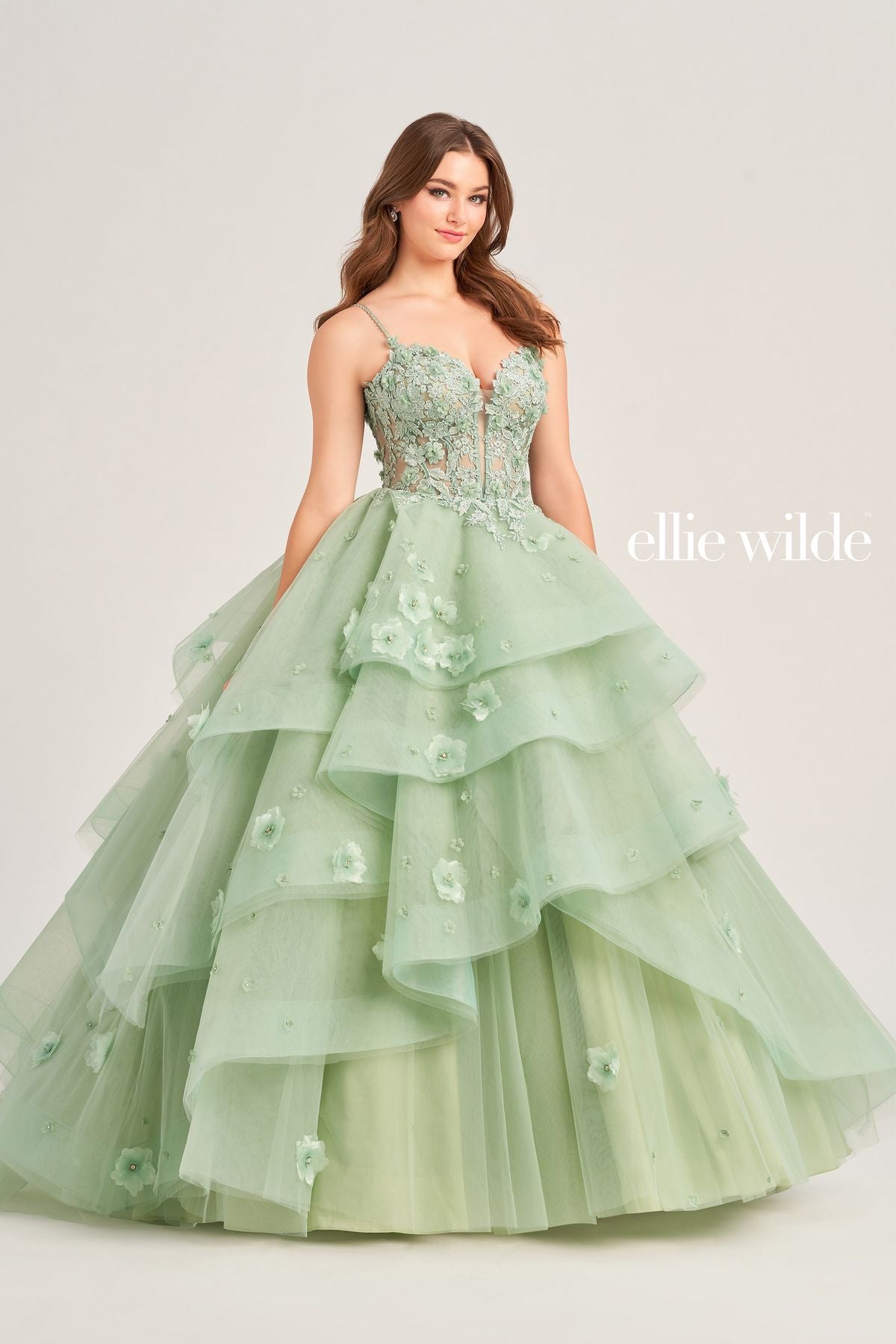 Shine in EW35206 by Ellie Wilde, a long spaghetti strap beauty with a sheer corset bodice. Ideal for prom or any other memorable event. Shine on your special night and embrace your individual flair.