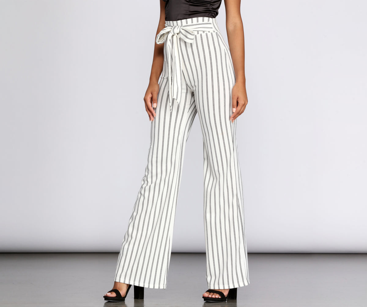 Introducing the perfect pants for both work and play. These classy-yet-chic trousers feature a flattering high rise and adjustable front tie closure. Structured with a flowy, wide leg opening, they're composed of a crepe fabric with moderate stretch for a relaxed fit.