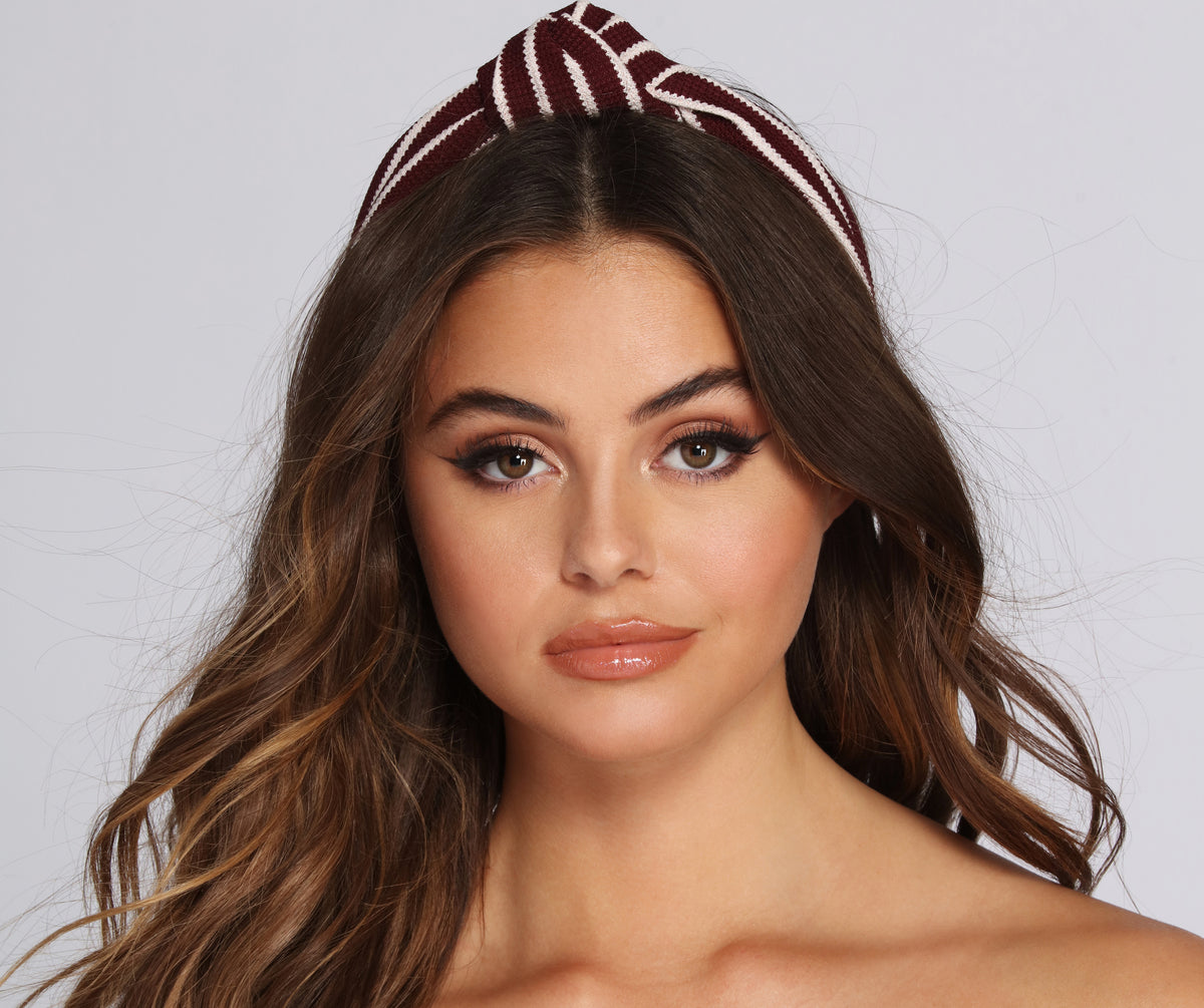 Add a little style to your 'do! This open ended headband is structured with a knit material and showcases a striped pattern with a knot accent at top.