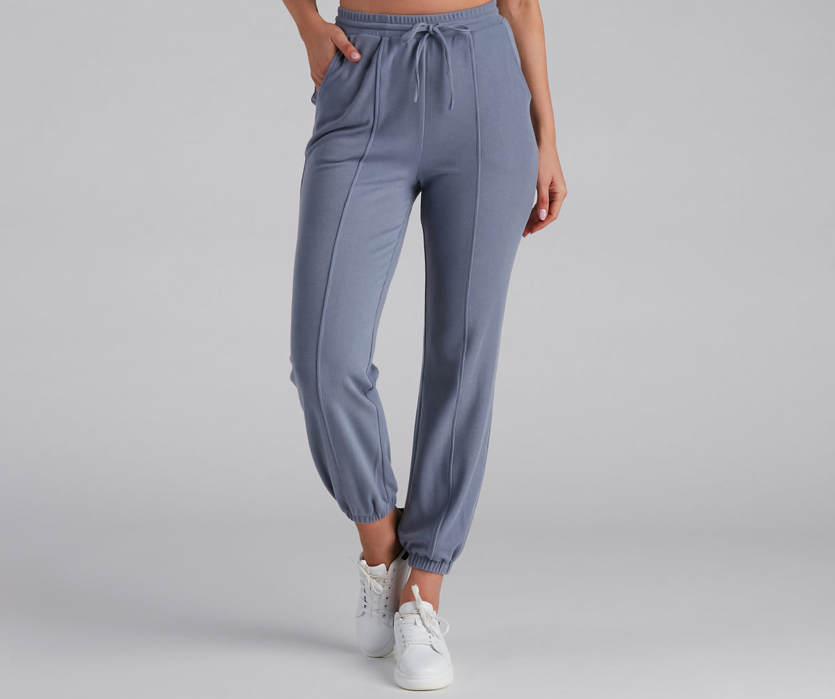 Bring on the trendy casual vibes with these adorable joggers! They feature a high-rise waist, an adjustable drawstring front, vertical seam detailing, and cinched jogger hems. Style these joggers with the matching hoodie for the perfect loungewear look!