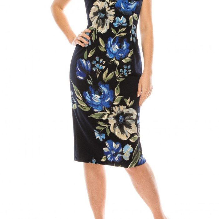 Navy Blue 0 London Times Painted Floral Printed Sheath Dress Sale